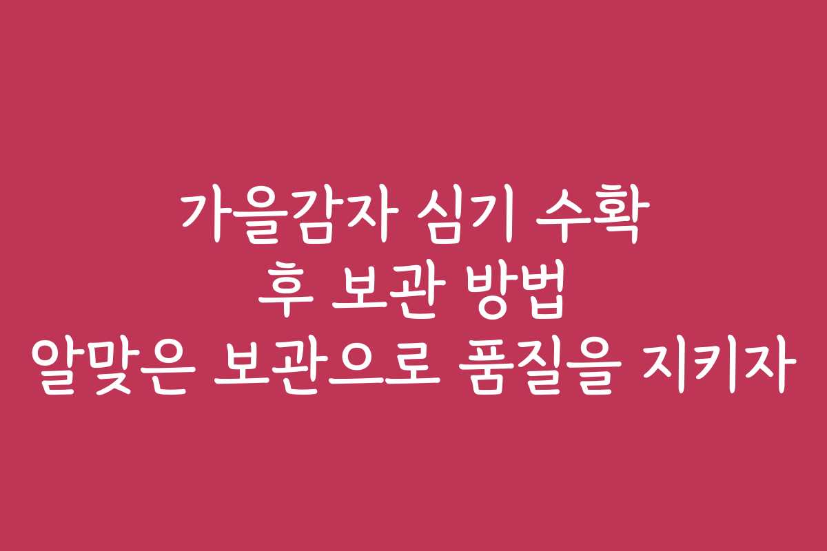 가을감자 보관 품질을 지키는 팁