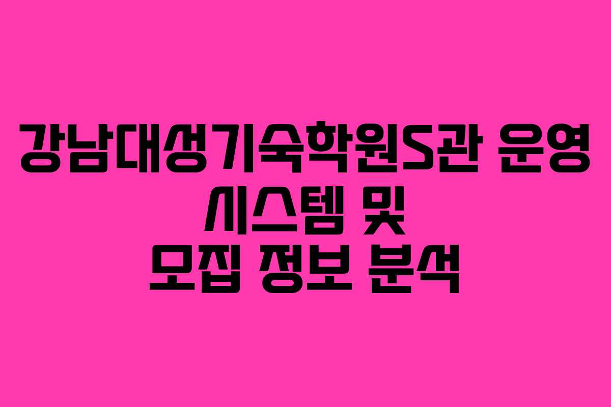 강남대성기숙학원S관의 특징