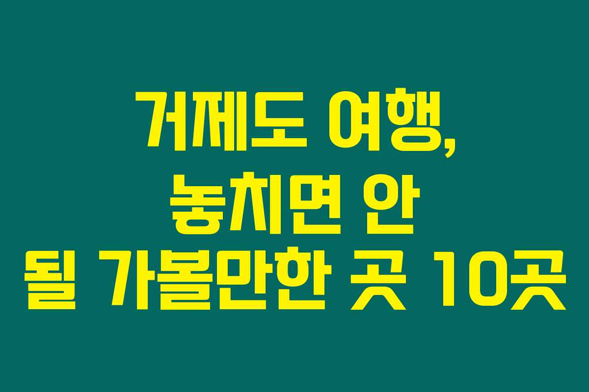여행 계획 중에 거제도로 가려고 고민 중이라면 이 글을 꼭 확인해 주세요. 아름다운 바다와 힐링의 장소가 많은 거제도, 혹시 어떤 곳이 정말 가볼만한지 궁금하신가요? 아래를 읽어보시면 거제도에서 즐길 수 있는 핫한 명소들을 한눈에 확인할 수 있어요. 놓치면 후회할 거예요!