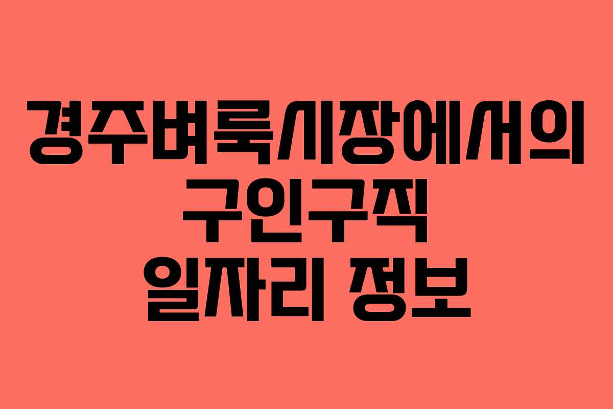 경주벼룩시장은 구직자들에게 유용한 정보를 제공하는 플랫폼입니다. 정기적인 사이트 방문과 적극적인 정보 수집을 통해 여러분이 원하는 일자리를 찾을 수 있기를 바랍니다.