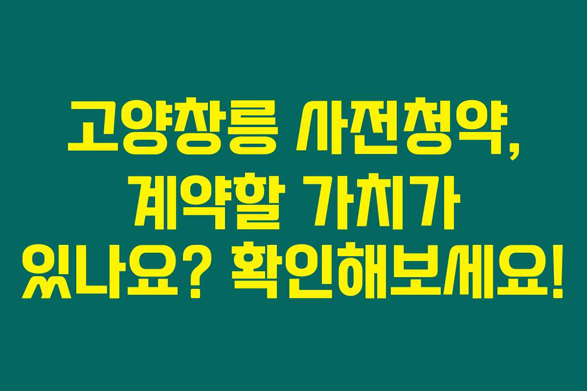 고양창릉 사전청약, 분양가 정말 괜찮은가?