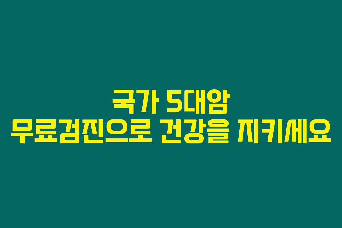 한국에서는 국가 5대암 무료검진을 통해 국민들의 건강을 챙기고 있습니다. 위암, 유방암, 대장암, 간암, 자궁경부암 총 5가지 암이 무료로 검진 가능합니다. 이 암들은 한국인이 많이 걸리는 암들로, 각 암에 대한 검진은 정해진 연령대에 해당하는 사람들에게 제공됩니다. 그렇게 하여 암의 조기 발견을 통한 생존율 향상을 목표로 하고 있습니다.