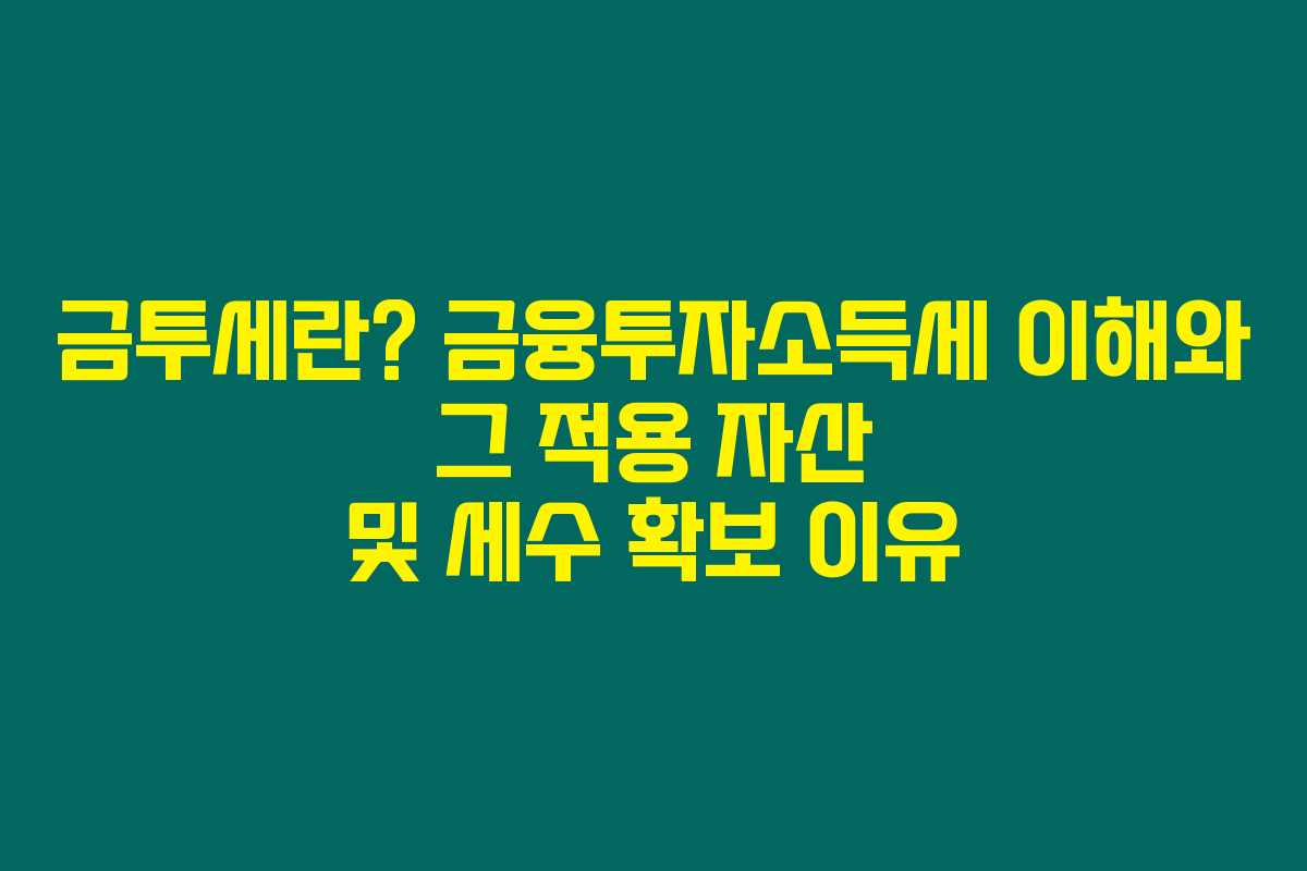 금투세에 대해 궁금하신가요? 이 글에서는 금투세의 의미, 적용되는 자산들, 그리고 세수를 확보해야 하는 근본적인 이유를 살펴보겠습니다. 아래를 읽어보시면 금융투자소득세가 가지는 중요한 의미와 현재의 적립금 확보 방법에 대해 알게 될 거예요.