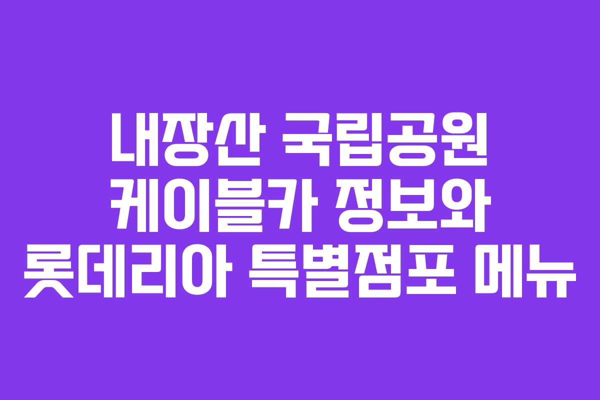 내장산 국립공원은 아름다운 자연경관과 함께 케이블카를 이용해 산의 절경을 감상할 수 있는 매력적인 장소입니다. 이번 포스팅에서는 내장산 케이블카의 운행 시간, 요금, 그리고 국립공원 내 롯데리아 특별점포 메뉴에 대해 자세히 알아보겠습니다.