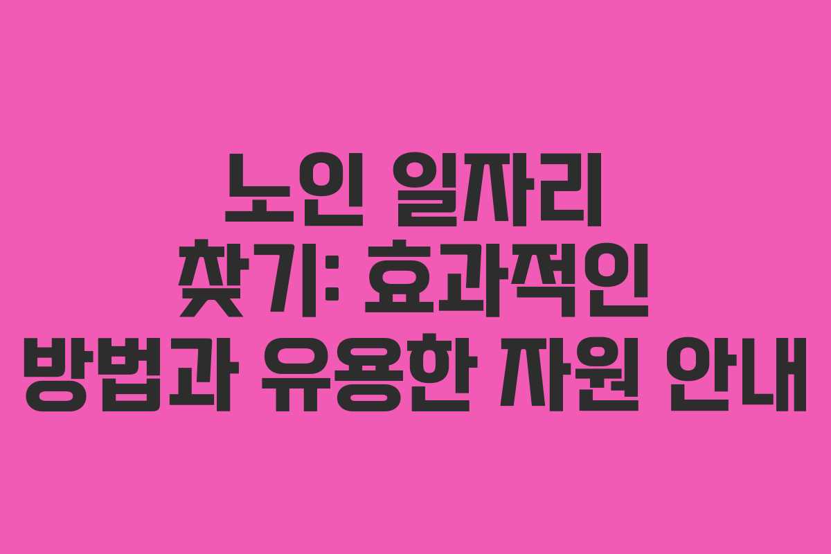 노인 일자리를 찾는 방법에는 어떤 것들이 있나요?