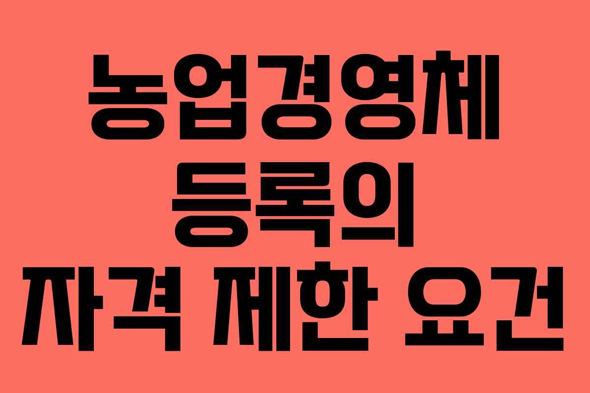 농업경영체 등록은 농업인들에게 다양한 지원과 혜택을 제공합니다. 그러나 모든 농업인이 이 등록을 신청할 수 있는 것은 아닙니다. 이번 글에서는 농업경영체 등록의 자격 제한 요건에 대해 자세히 알아보겠습니다.