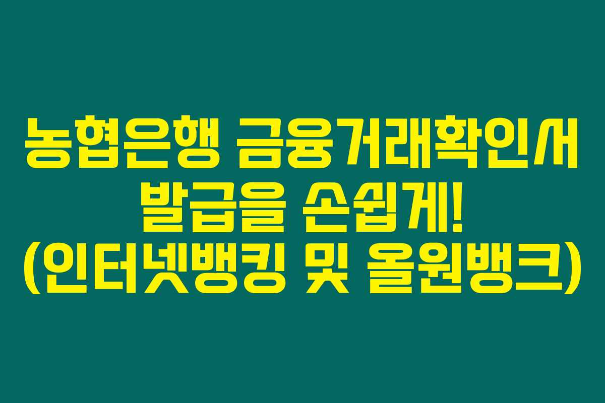 농협은행의 금융거래확인서를 인터넷으로 발급받는 방법은 마치 쇼핑하듯이 간편해요. 아래의 단계를 잘 따라해 보세요!