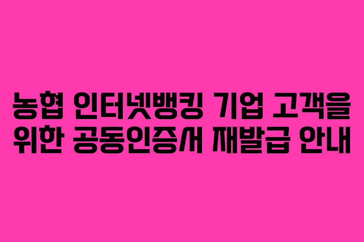 농협의 인터넷뱅킹 서비스는 개인 및 법인 사업자에게 필수적인 금융 거래를 지원합니다. 특히, 재화나 용역을 공급한 경우 계산서 발행을 위해 공동인증서 또는 금융인증서로 로그인이 필요합니다. 이번 글에서는 기업 고객이 공동인증서를 재발급받는 방법과 관련된 정보를 안내하겠습니다.