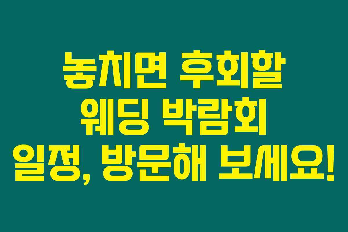 결혼 준비는 힘든 과정이지만, 웨딩 박람회에 참여해서 여러 정보를 모은다면 한층 수월해질 거예요. 예비 신랑, 신부 여러분! 이번 기회를 놓치지 말고 꼭 방문해 보세요!