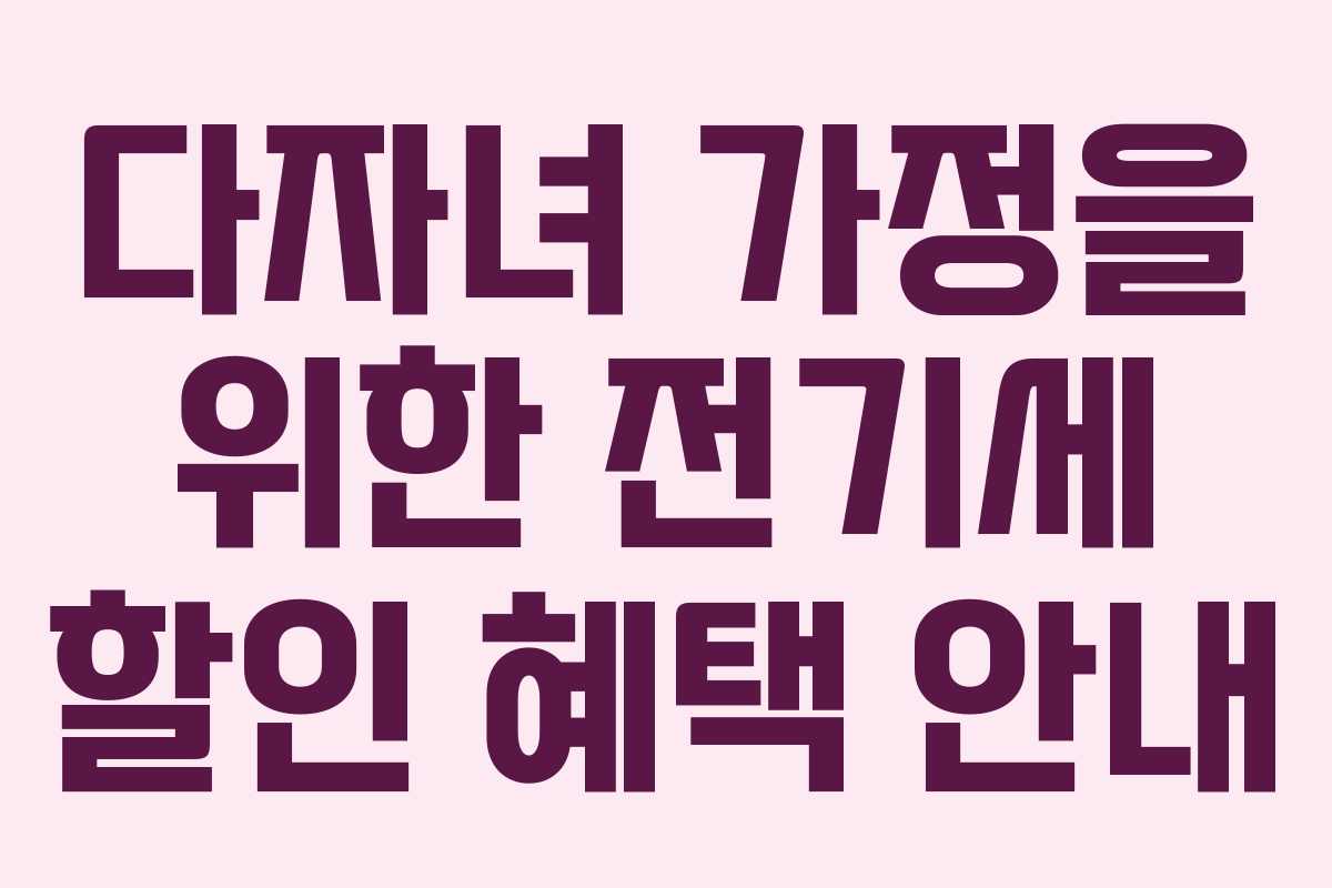 다자녀 전기세 할인 제도는 자녀가 많은 가정의 전기 요금 부담을 줄이기 위해 정부가 시행하는 혜택입니다. 이를 통해 세 자녀 이상 가구, 5인 이상 가구, 3년 미만 영아가 포함된 가정이 지원을 받을 수 있습니다.