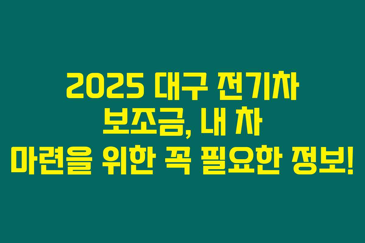2025년도 대구의 전기차 보조금 소식이 드디어 전해졌어요. 정부의 지원으로 전기차 구매가 더 수월해질 전망이며, 많은 분들이 이 기회를 놓치고 싶지 않을 겁니다. 아래를 읽어보시면 대구 전기차 보조금의 지원 규모, 신청 방법, 충전 카드 혜택 등을 한눈에 확인할 수 있습니다. 이 포스트는 모든 예비 오너에게 필요한 정보로 가득 차 있습니다.