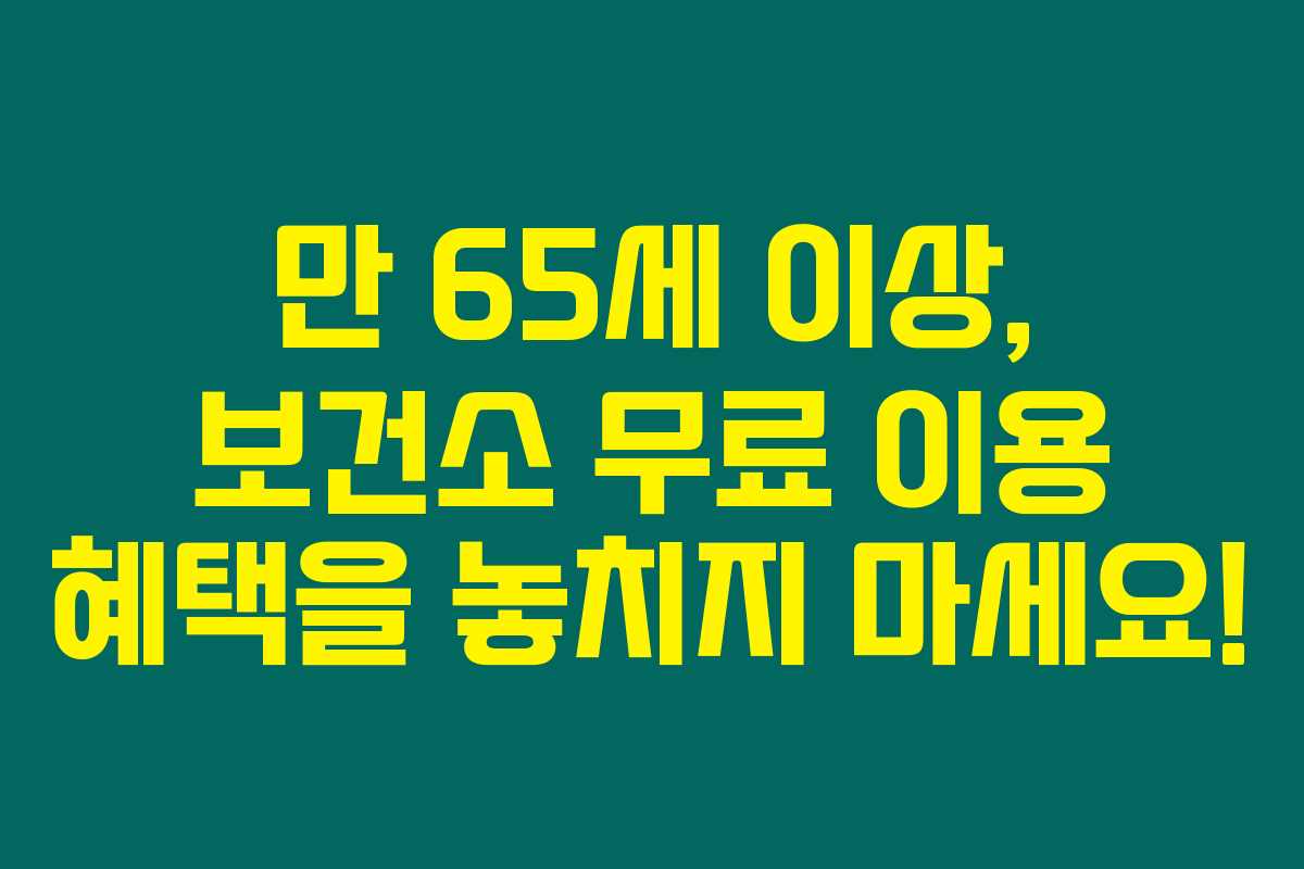 65세 이상의 어르신들이 보건소를 이용하신다면 어떤 혜택이 있는지 궁금하신가요? 만약 여러분이 만 65세 이상이라면, 아래의 정보를 통해 보건소에서 제공하는 각종 무료 혜택을 꼭 확인해 보셔야 해요. 보건소 방문이 건강 관리에 큰 도움이 될 수 있답니다.