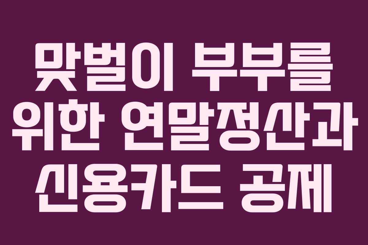 연말정산은 맞벌이 부부에게 절세의 기회를 제공하는 중요한 과정입니다. 특히, 신용카드 공제를 활용하면 세금 부담을 줄일 수 있는 방법이 많습니다. 이번 글에서는 맞벌이 부부의 연말정산에서 유의해야 할 사항과 신용카드 공제의 활용법에 대해 알아보겠습니다.