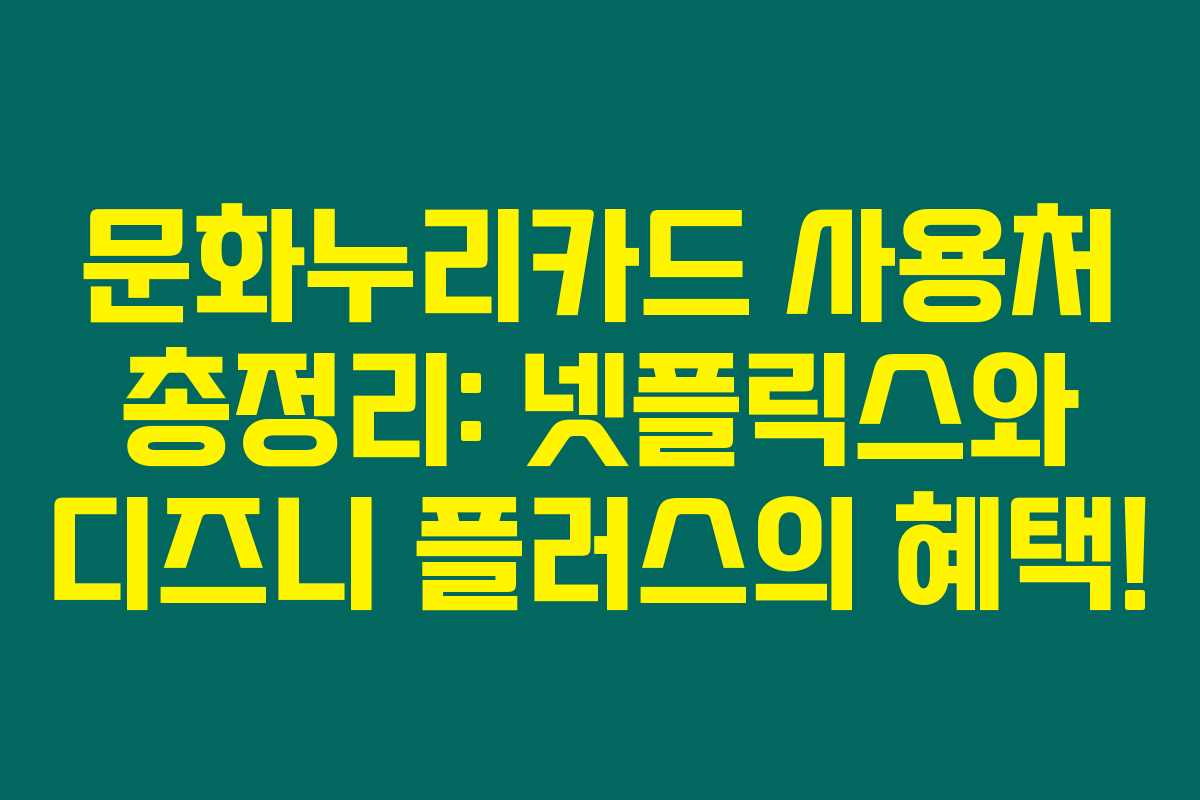 제가 직접 체크해본 바로는, 문화누리카드는 경제적 지원을 필요로 하는 분들에게 많은 문화, 여행, 체육 분야에서 혜택을 제공하는 유용한 도구입니다. 이 카드를 통해 넷플릭스, 디즈니 플러스와 같은 인기 온라인 콘텐츠 플랫폼에서도 특별한 할인을 받을 수 있습니다. 아래를 읽어보시면 문화누리카드의 다양한 사용처와 혜택을 자세히 알아볼 수 있습니다.
