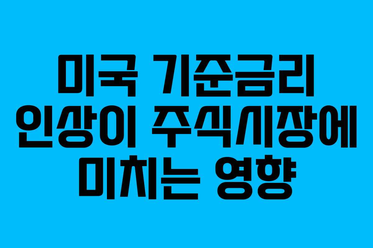 미국의 기준금리 인상은 전 세계 경제에 중대한 영향을 미칩니다. 주식 투자자라면 이러한 변화가 주식 시장에 미치는 영향을 이해하는 것이 중요합니다. 이번 글에서는 미국 기준금리 인상과 그로 인한 주식 시장의 변화를 심도 있게 분석해보겠습니다.