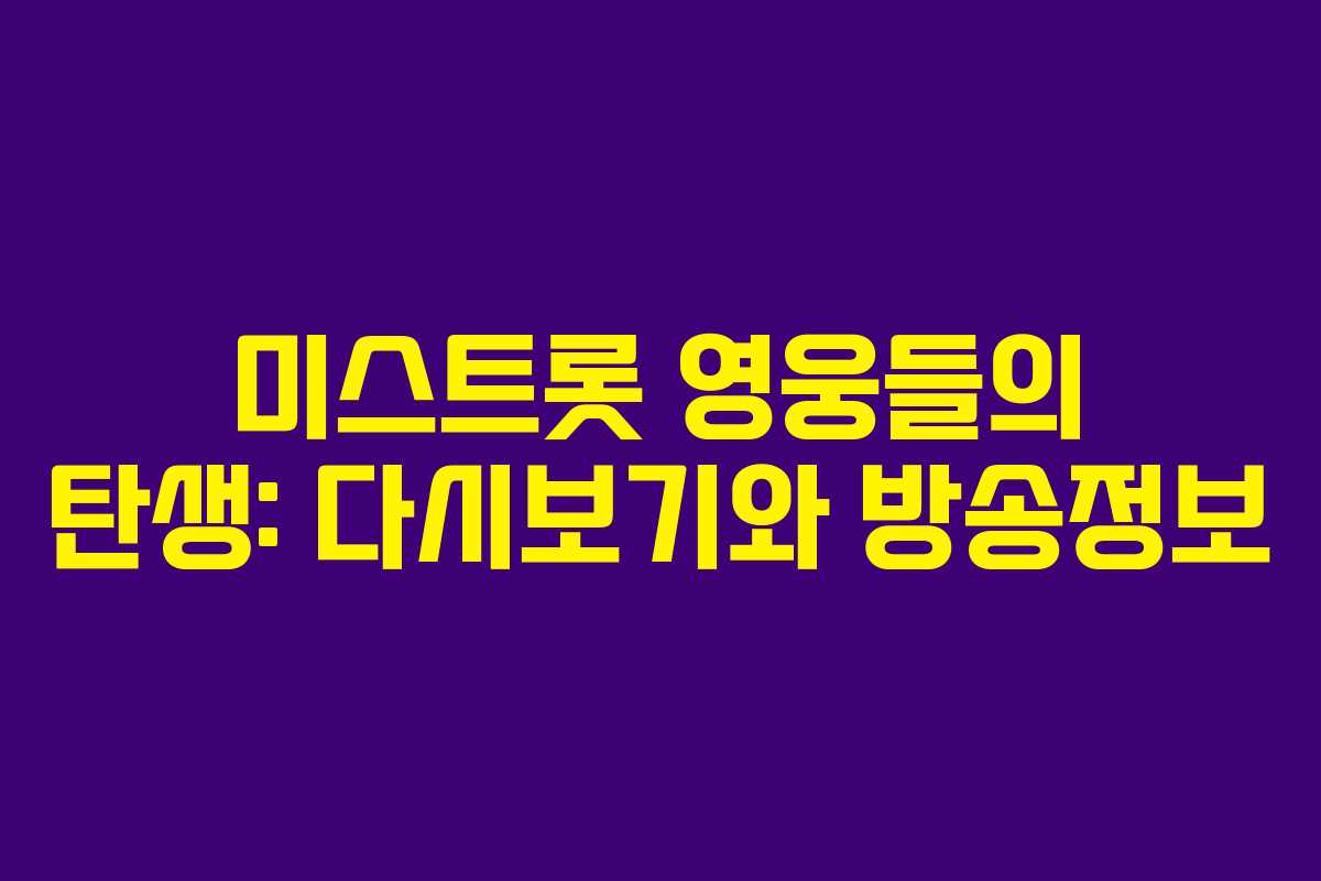 미스트롯 영웅들의 탄생은 미스터트롯 시즌2 방영에 앞서, 최초의 트로트 오디션 프로그램인 미스트롯의 감동적인 순간들을 재조명하는 예능 프로그램입니다. 이 프로그램은 매주 금요일 오후 10시에 TV조선에서 방송되며, 시청자들에게 잊지 못할 감동을 다시 한 번 선사하고 있습니다.