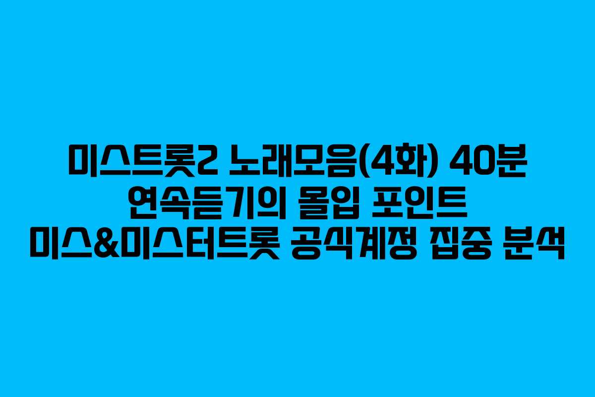 미스트롯2 노래모음(4화) 40분 연속듣기의 몰입 포인트 미스&미스터트롯 공식계정 집중 분석