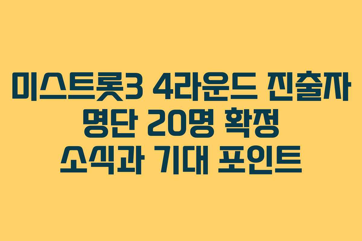 아래를 읽어보시면 4라운드에 진출한 20명의 미스트롯3 참가자 명단과 특징이 한눈에 정리됩니다 투표 흐름과 기대 포인트까지 함께 확인해 보세요