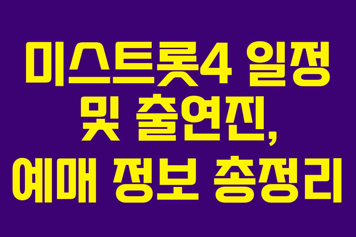 아래를 읽어보시면 미스트롯4 일정과 출연진, 예매 정보를 한눈에 파악할 수 있습니다. 팬으로서 놓치지 말아야 할 포인트를 체계적으로 정리했어요. 일정이 변동될 수 있으니 공식 공지와 함께 체크하는 습관이 필요합니다. 지금 바로 핵심 포인트를 확인하고 예매까지 이어가 보세요.