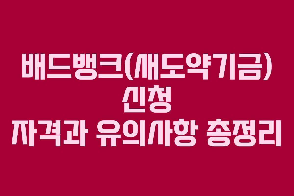 배드뱅크(새도약기금) 신청 자격과 유의사항 총정리
