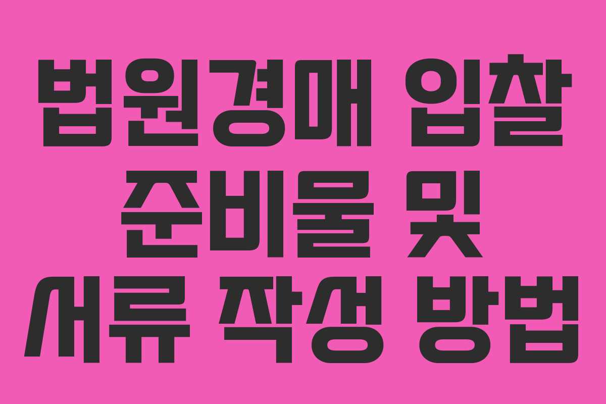 법원경매에 참여하기 위해서는 필요한 준비물과 입찰서류의 작성 방법을 정확히 이해하는 것이 중요합니다. 이 글에서는 개인 및 법인 입찰 시 필요한 준비물과 입찰서류의 작성 방법에 대해 상세히 설명드리겠습니다.