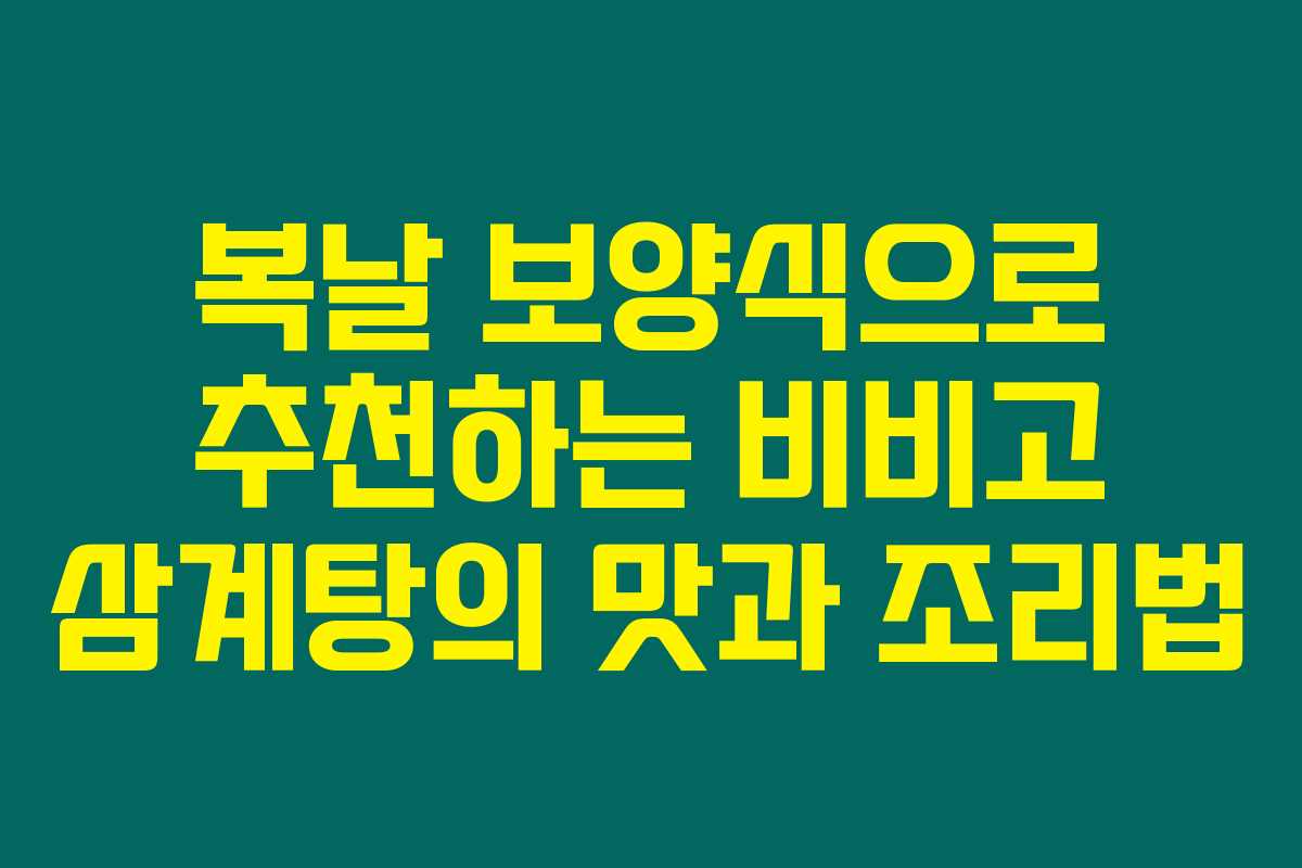 제가 직접 알아본 바로는, 복날이 다가오면 많은 분들이 보양식을 떠올리게 되는데요, 그중에서도 비비고 삼계탕은 매우 인기 있는 제품이랍니다. 이번 복날에 이 삼계탕을 경험해보고, 가격과 맛, 조리법에 대해 상세히 소개해드릴게요. 아래를 읽어보시면 이 제품의 매력을 잘 이해하실 수 있을 거예요!