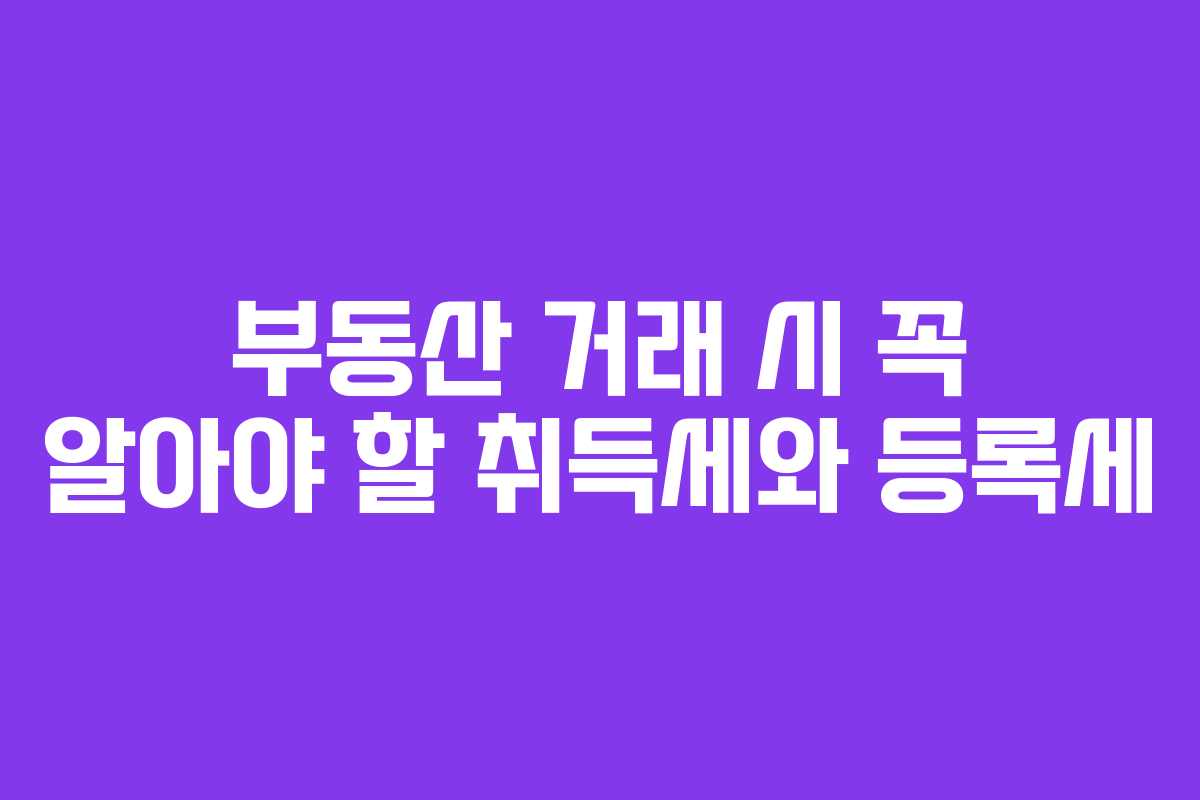 부동산 거래를 계획하는 과정에서 고려해야 할 중요한 요소 중 하나는 바로 취득세와 등록세입니다. 이 두 가지 세금은 거래되는 부동산의 실제 가격과 함께 예산에 포함되어야 하므로, 이에 대한 이해가 필수적입니다. 이번 글에서는 부동산 취득세와 등록세의 개념 및 계산 방법을 자세히 알아보겠습니다.
