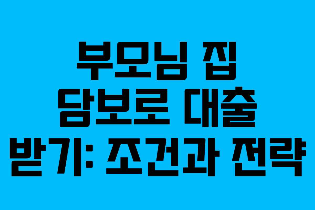 부모님 집 담보로 대출 받기: 조건과 전략