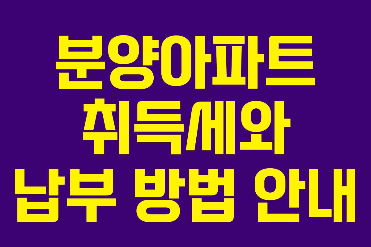 아파트를 구매할 때 취득세는 필수적으로 고려해야 할 요소입니다. 이 글에서는 분양아파트 취득세 납부기한, 계산 방법, 카드납부 방법, 신고 및 납부 절차에 대해 알아보겠습니다.
