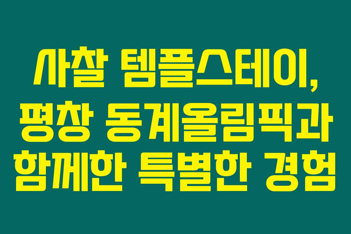 특히 이번 평창 동계올림픽과 관련하여 제공되는 최대 80% 할인 이벤트는 절호의 찬스에요. 경기 입장권 소지자들은 저렴한 가격에 템플스테이를 체험할 수 있으니, 놓치면 아쉬울 듯해요.