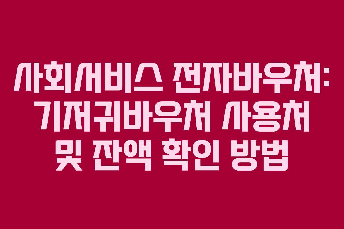 기저귀바우처 잔액은 사회서비스 전자바우처 홈페이지에서 회원가입 후 조회 가능합니다. 이를 통해 사용 가능한 잔액을 쉽게 확인할 수 있습니다.