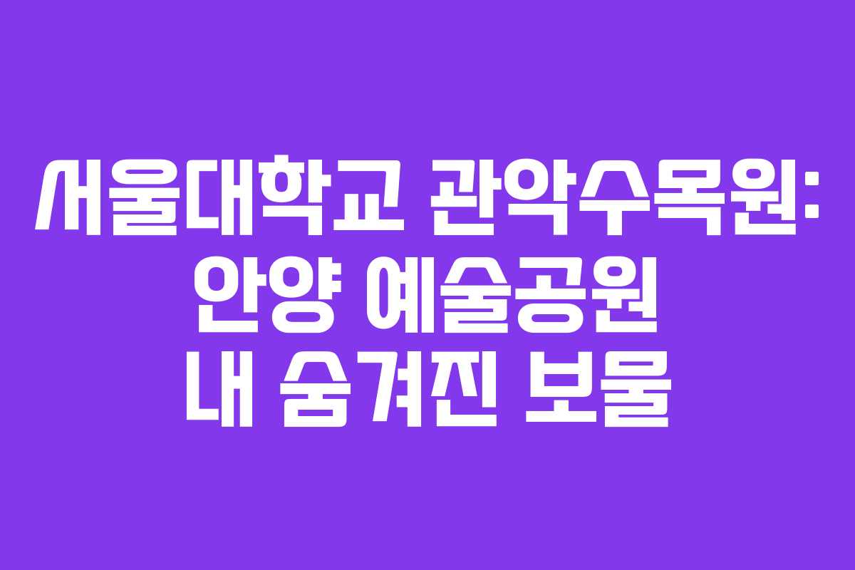 서울대학교 관악수목원은 안양시와 서울시, 과천시에 걸쳐 있는 수목원으로, 비밀의 숲으로 불리며 최근에 시범 개방되었습니다. 이곳은 안양 예술공원 끝자락에 위치해 있어, 자연을 즐기기에 좋은 장소입니다.