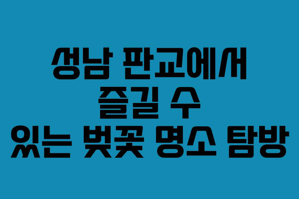 2026년을 맞아 성남 판교 지역에서도 벚꽃이 만개할 시기입니다. 벚꽃 구경을 계획하고 있다면 이 글을 통해 성남 판교의 아름다운 벚꽃 명소를 소개하고자 합니다. 특히, 올해 벚꽃은 이상 기온 덕분에 개화 시기가 앞당겨져 더욱 기대를 모으고 있습니다. 이제 벚꽃을 만끽할 준비를 해보세요.