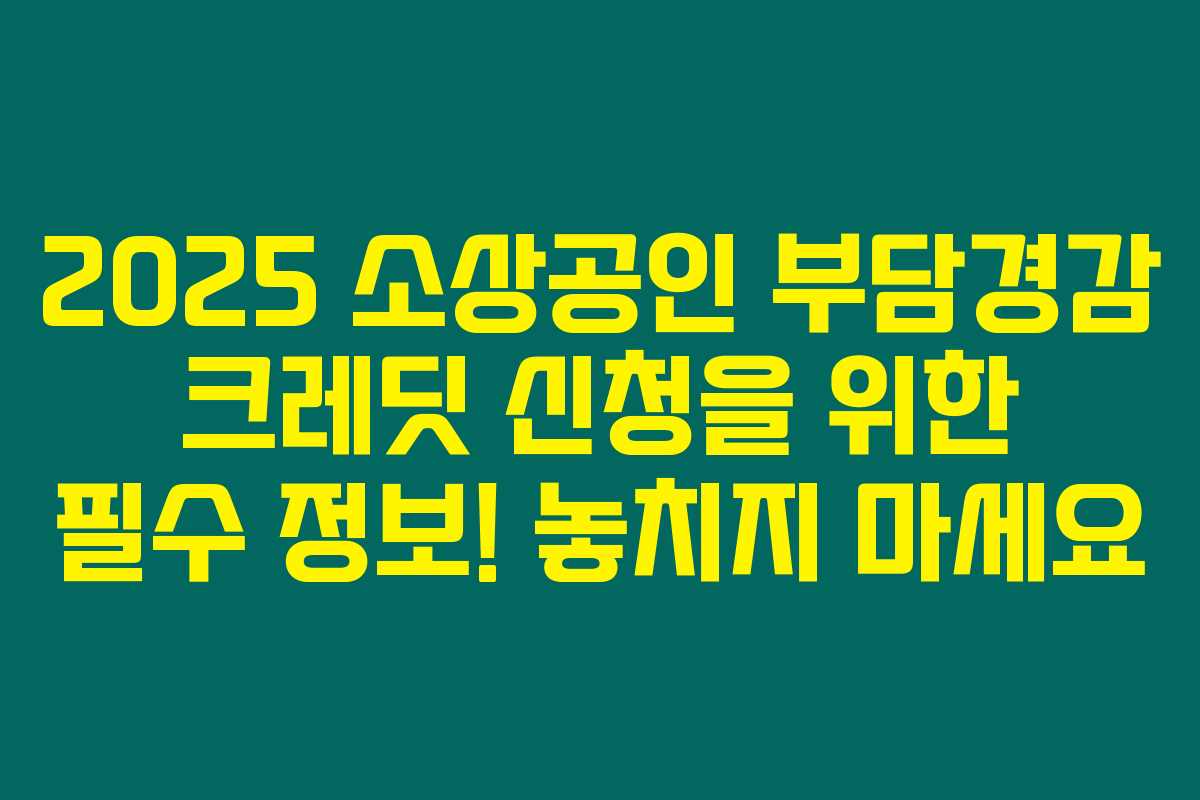 부담경감 크레딧은 소상공인들에게 실질적인 지원을 제공하여 경제적 부담을 덜어줄 수 있는 유용한 제도입니다.