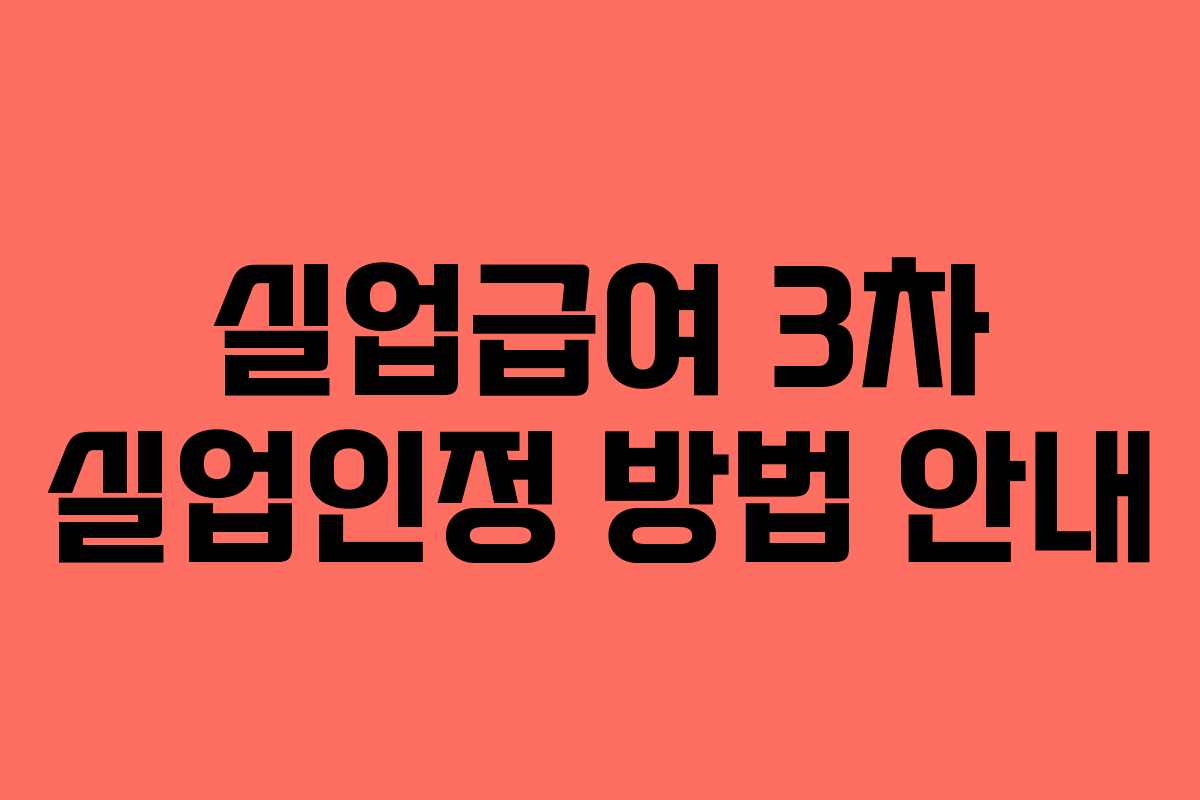 실업급여를 수령하기 위해서는 정해진 절차를 따라야 합니다. 특히, 3차 실업인정일이 다가오면 온라인 교육과 실업인정 신청을 통해 원활하게 진행할 수 있습니다. 이번 글에서는 실업급여 3차 실업인정에 필요한 방법에 대해 알아보겠습니다.