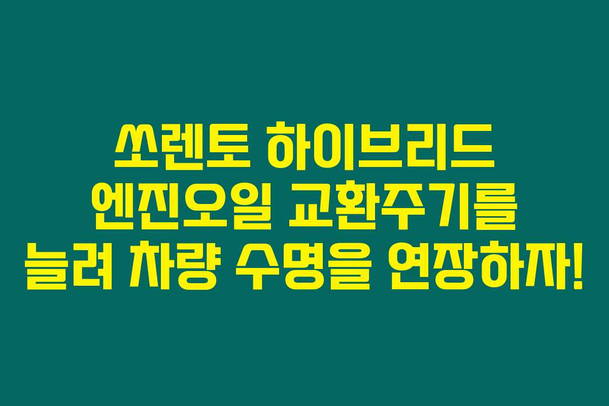 차량 유지 관리를 통해 적절한 엔진오일 교환주기를 준수하는 것은 차량 수명 연장과 성능 유지에 큰 도움이 됩니다. 쏘렌토 하이브리드와 함께하는 즐거운 드라이빙을 위해 부지런히 차량 점검하고 유지관리하시길 바랍니다. 다른 질문이나 추가적인 정보가 궁금하시다면, 언제든지 댓글로 남겨주세요!