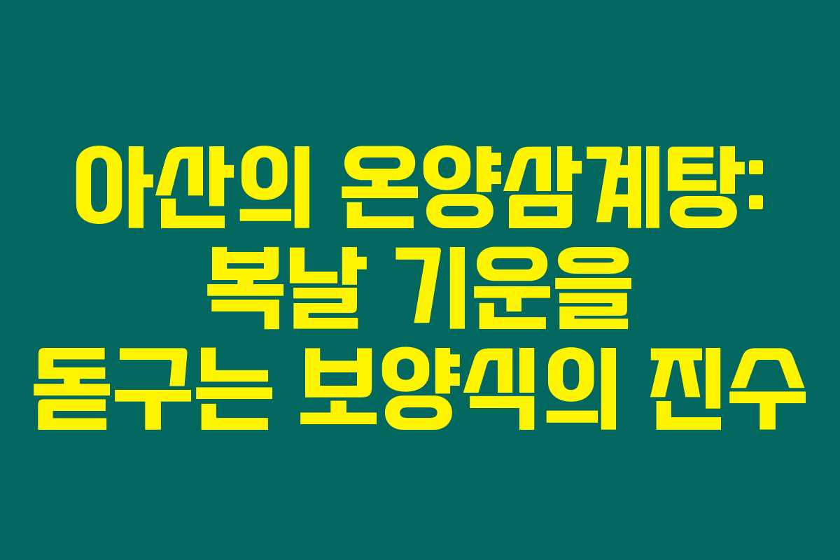 제가 직접 알아본 바로는 온양삼계탕은 충청남도 아산의 전통적인 보양식으로, 약 40년 이상의 역사를 가지고 있습니다. 위치는 아산 온천역과 가까워 이 지역을 찾는 관광객들에게도 친숙한 맛집이죠. 국물이 진하고 깊은 맛을 지닌 이 삼계탕은 특히 더위에 지친 몸을 회복시키는 데 탁월하답니다.