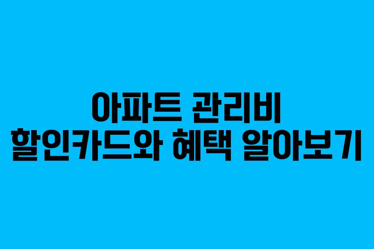 아파트에 거주하는 분들에게 매달 관리비는 늘 부담이 되는 문제입니다. 이번 글에서는 아파트 관리비를 할인받을 수 있는 방법과 할인카드의 종류 및 혜택에 대해 알아보겠습니다.