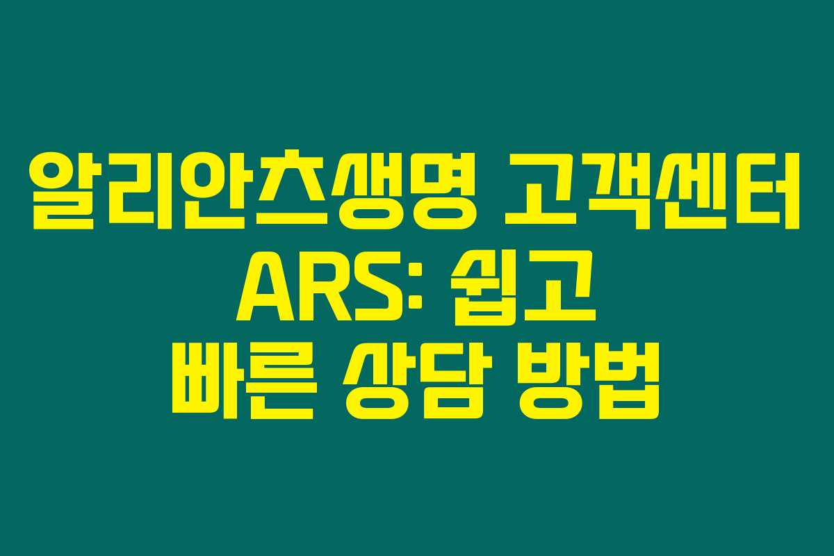 알리안츠생명 고객센터 ARS: 쉽고 빠른 상담 방법
