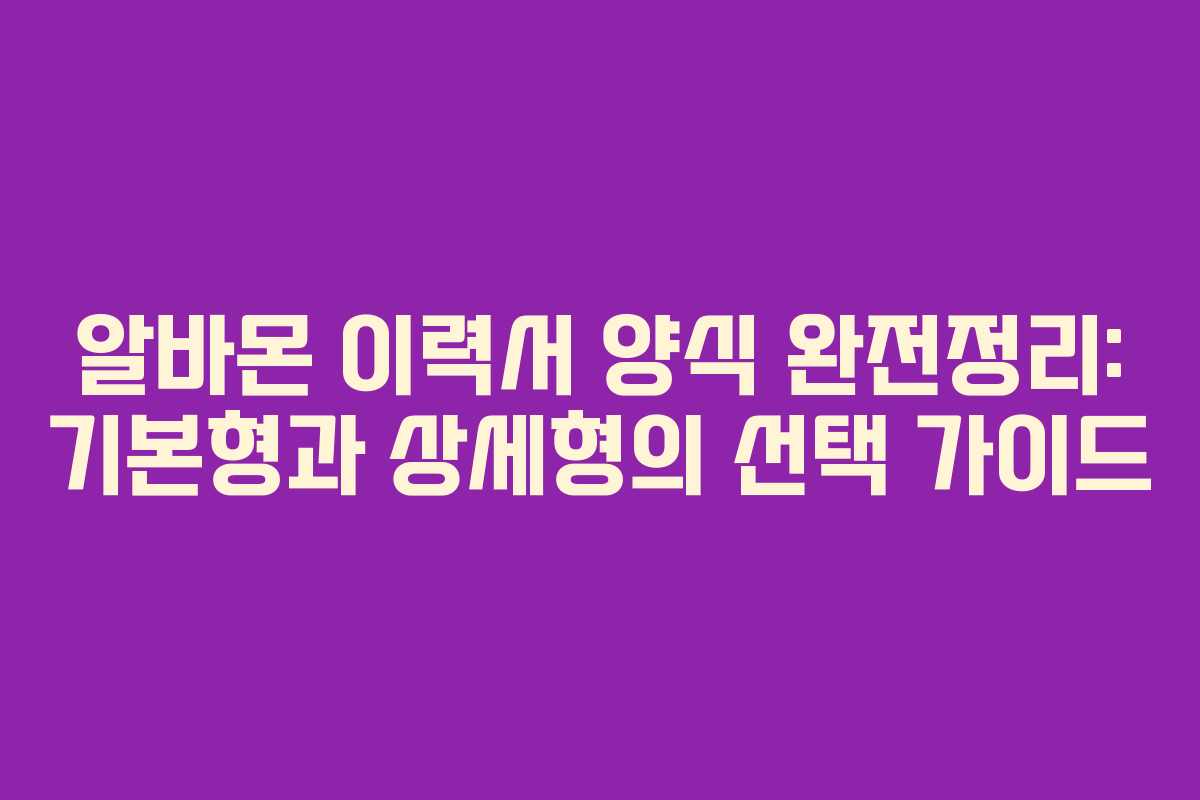 아르바이트 구직 시 핵심 도구인 이력서는 양식에 따라 제시하는 정보의 범위가 달라집니다. 본 글은 알바몬의 기본형과 상세형 이력서를 중심으로, 각각의 특징과 활용 상황, 다운로드 방법, 작성 팁과 주의점을 한눈에 정리합니다. 아래를 읽어보시면 두 양식의 차이점과 실제 활용 팁을 빠르게 파악할 수 있습니다.