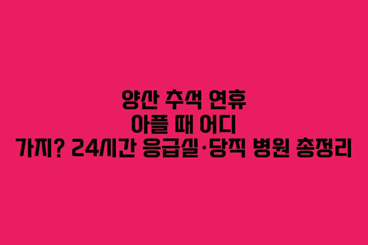 응급실은 연휴 기간 동안 24시간 운영됩니다. 양산부산대학교병원, 베데스다복음병원, 본바른병원에서 응급 진료를 받을 수 있습니다.