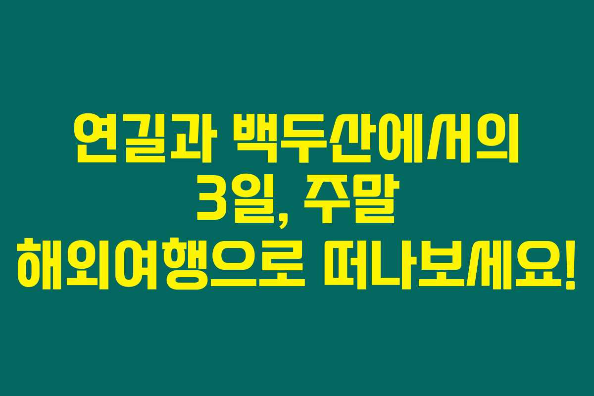 여행을 통해 특별한 경험을 원하신다면 연길과 백두산 패키지가 대안입니다. 일상의 스트레스를 날려버리고 새로운 경험을 쌓을 수 있는 기회를 놓치지 마세요. 이 글이 여러분의 주말 해외여행 결정을 도와주길 바라요. 모두투어에서의 멋진 여행을 위해 지금 바로 전화해보세요!