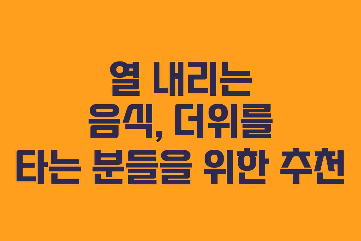 여름철, 특히 더위를 많이 타는 분들에게는 체온 조절이 중요한 문제입니다. 몸에 열이 많아 탈수 증상이나 불편함을 겪는다면, 차가운 성질을 가진 열 내리는 음식을 섭취하는 것이 좋습니다. 이러한 음식들은 체온을 낮추고 수분을 보충하는 데 도움을 줄 수 있습니다.