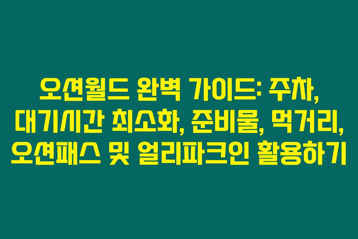 여름물놀이의 성지인 오션월드에 가시려는 계획이신가요? 그러면 이 글을 아래를 읽어보시면 더욱 유익한 여행이 될 거예요. 오션월드는 사람들이 많이 몰리는 여름철에 다녀오면 대기시간과 주차 문제로 곤란을 겪는 경우가 많아 전략적 준비가 필수랍니다. 이 글에서는 주차, 대기시간 최소화, 필수 준비물, 먹거리, 오션패스, 얼리파크인 등 다양한 정보를 제공합니다.