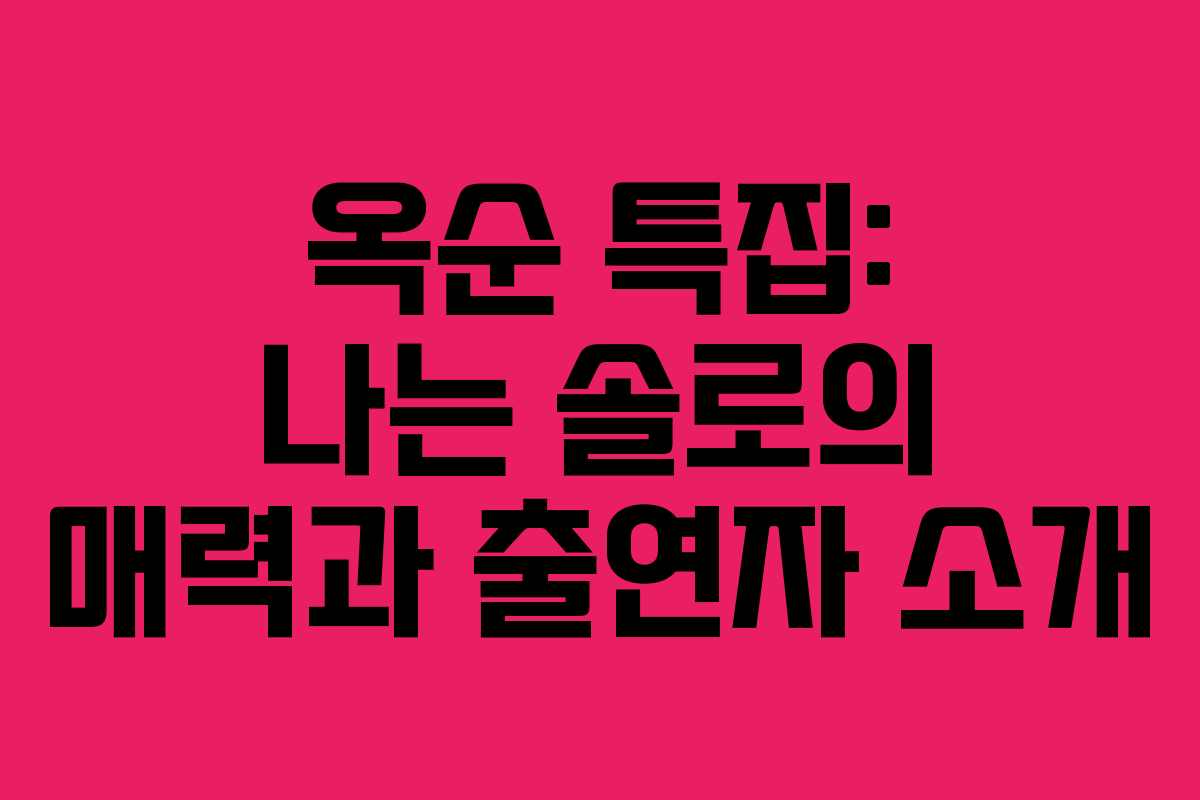 옥순 특집은 현재 방송 중이며, 자세한 일정은 프로그램 공식 인스타그램을 통해 확인 가능합니다.