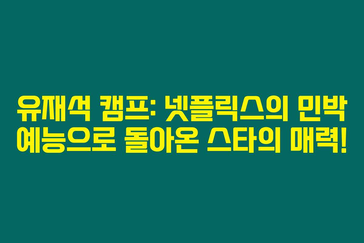 ‘유재석 캠프’는 유재석의 특별한 매력을 가득 담은 민박 예능으로, 시청자들에게 새로운 웰빙 경험을 선사할 거예요. 유재석의 유머와 따뜻한 소통이 어우러진 이 프로그램을 통해 더욱 많은 웃음과 감동을 함께하길 바라며, 신청하는 기회를 잊지 마세요!