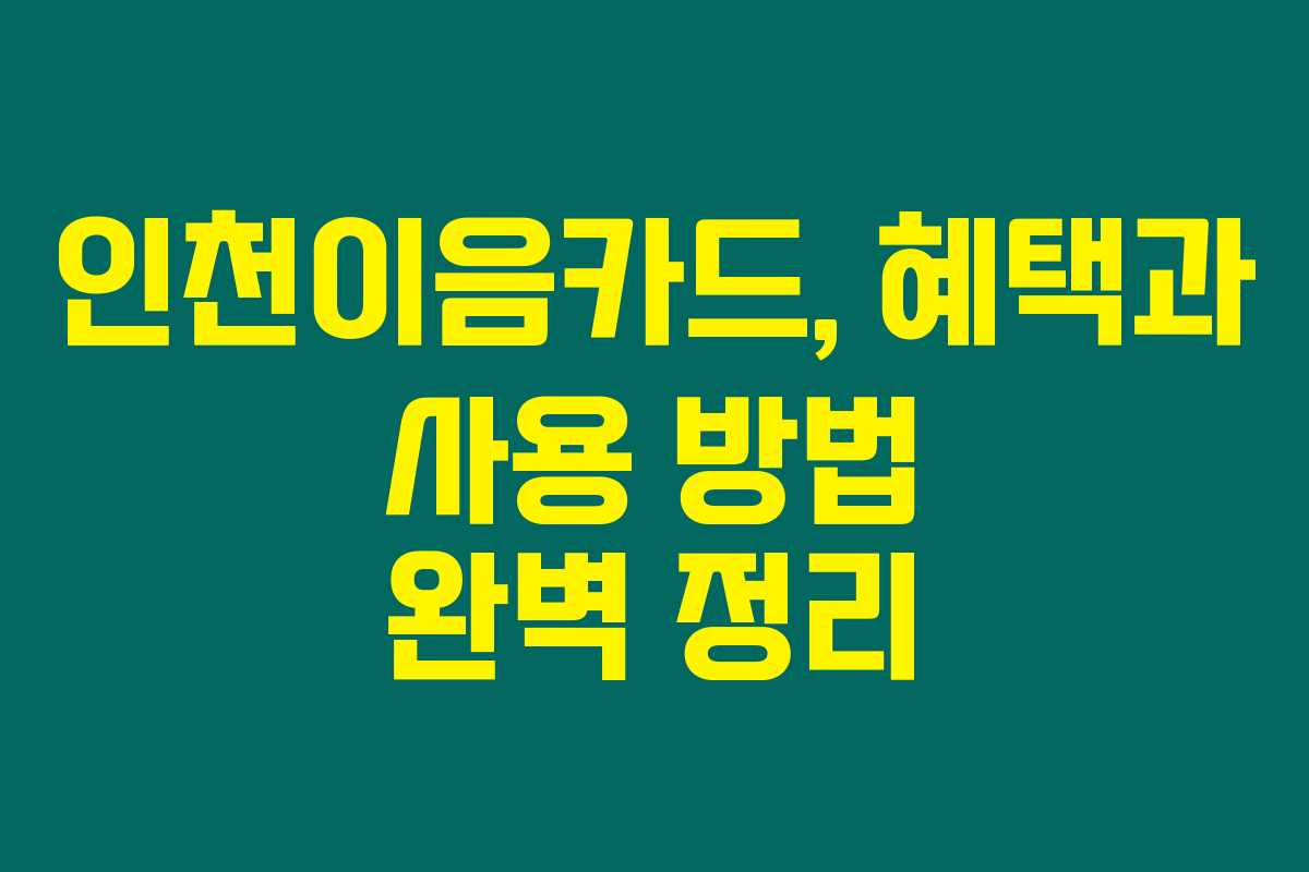 인천에서 생활하거나 여행한다면 꼭 알아두어야 할 카드가 바로 인천이음카드에요. 많은 분들이 훌륭한 혜택과 간편한 사용 방법을 체감하고 계신데요. 인천이음카드에 대해 자세히 알고 싶다면 아래를 읽어보시면 됩니다. 더 많은 할인과 혜택을 누릴 수 있는 기회를 놓치지 마세요!