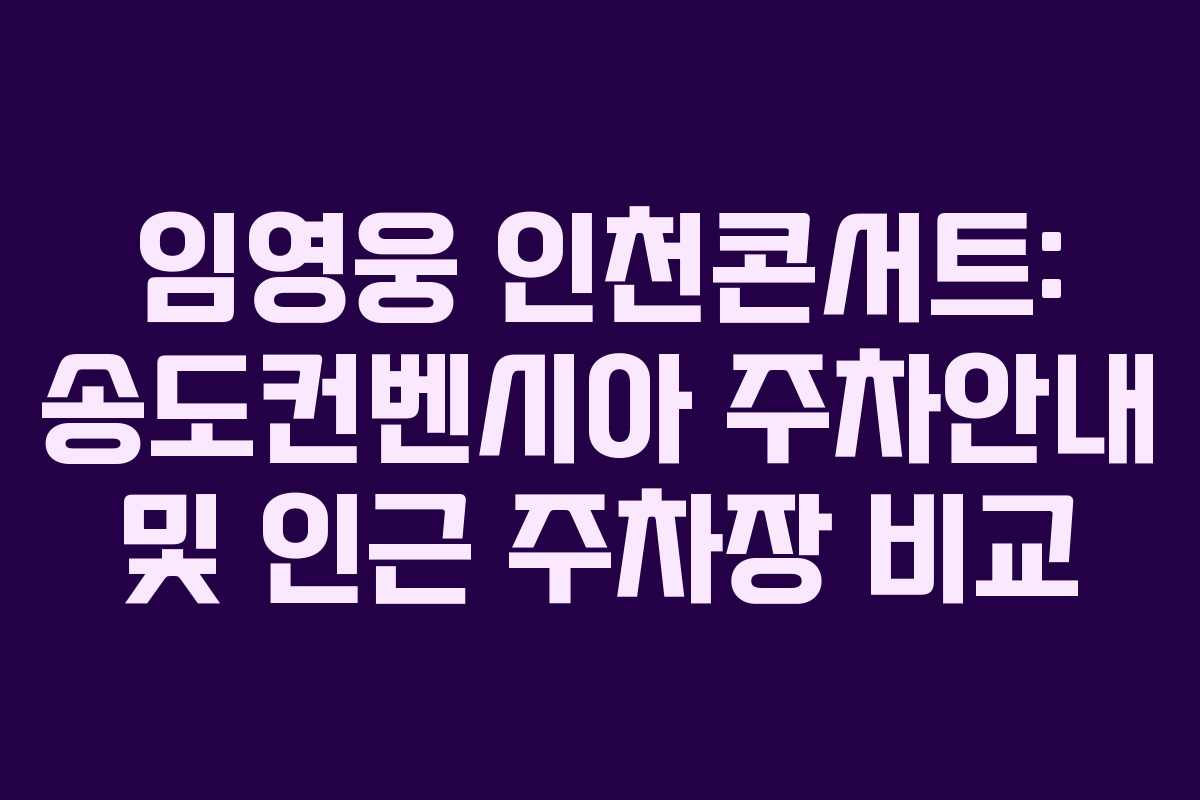 아래를 읽어보시면 임영웅 인천콘서트 당일 송도컨벤시아 주변 주차요금과 위치를 한눈에 확인할 수 있습니다. 현장 혼잡 시간과 대안 주차도 함께 정리했습니다.