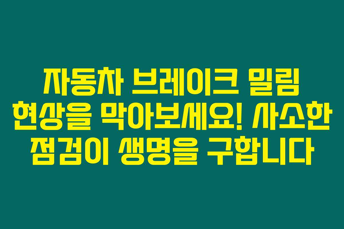 자동차에서 브레이크 밀림 현상을 겪고 계신가요? 주행 중 브레이크가 작동하지 않으면 위험이 얼마나 큰지 아시죠? 혹시 이런 상황을 경험하셨다면 충분히 공감하실 거예요. 아래를 읽어보시면 브레이크 밀림 현상의 원인과 해결책에 대해 상세히 알아볼 수 있을 거예요.