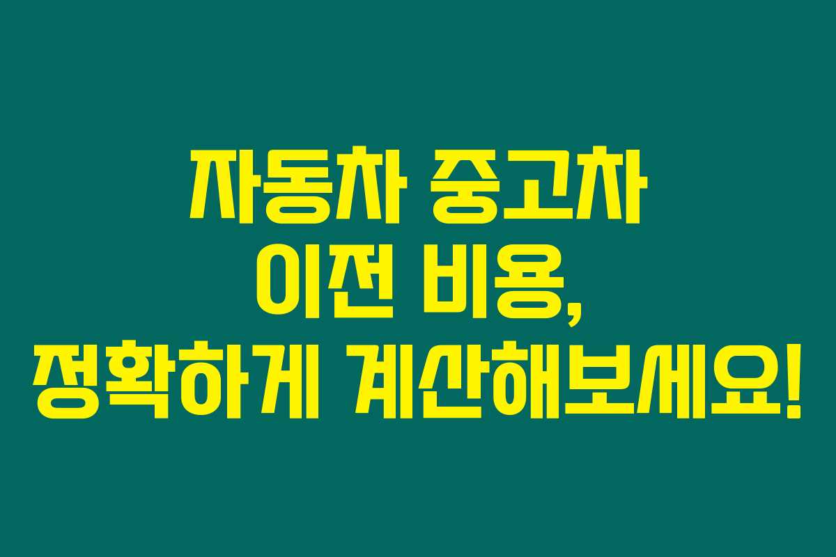 자동차 중고차 이전 비용은 다양한 요소로 인해 복잡하게 계산될 수 있어요. 정확한 수치를 아는 것이 중요하니, 위에서 설명한 방법을 통해 잘 계산해보세요. 더 많은 정보를 원하시면 언제든지 문의하셔도 좋답니다!